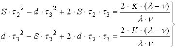 Условия (4-10) позволяют получить систему двух уравнений с двумя неизвестными