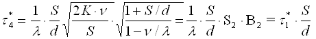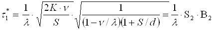 τц*=√ 2·K/(S·n)·√(1+ S / d)/ (1-n/l)= S1/B1 (4-17)