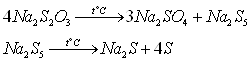 Тіосульфат натрію можна віднести до досить нестійких речовин. При нагріванні до 2200С розпадається відповідно до схеми:
