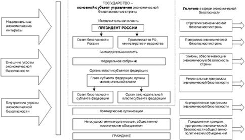 Итак, в управлении по обеспечению экономической безопасности страны ведущую роль играет государство и его институты экономического управления, особенно такой конституционный орган как Совет безопасности. С формированием гражданского общества в России все большую роль в обеспечении экономической безопасности будут играть неформальные организации, предприниматели и бизнесмены, работники частных и государственных предприятий.
