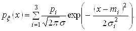 Рисунок 6 - Апроксимація складної щільності ймовірності за допомогою гаусових розподілів