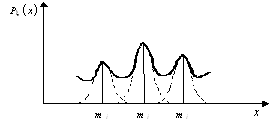 На рис.6 для прикладу показано, як за допомогою гаусових розподілів апроксимується щільність розподілу складнішого виду