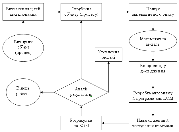 Рисунок 1.1 – Загальна схема процесу комп’ютерного математичного моделювання