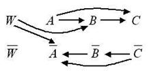– потомком литерала B. Тогда при добавлении гипотезы A®B в структуру появляется путь из W в