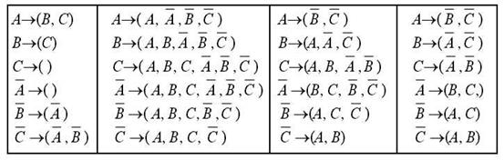 Другими словами, для выполнения инверсии в множестве литералов мы вместо каждого литерала из этого множества записываем его дополнение. Так, если S = {A,