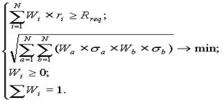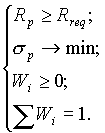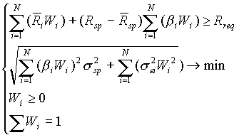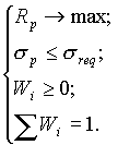 З використанням моделі Квазі-Шарп для розрахунку характеристик портфеля пряма задача набуває вигляду: