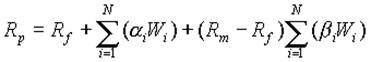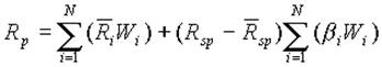 За моделлю Квазі-Шарп доходність портфеля цінних паперів — це середньозважена доходностей цінних паперів, що його складають: