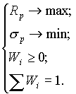 Нехай доходність портфелю з N цінних паперів Rp та його ризикованість sp визначається функціями: