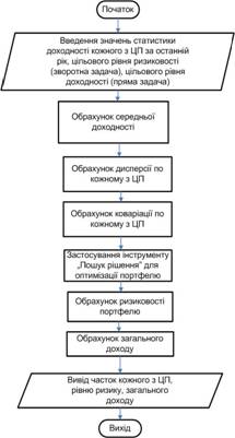 Рисунок 2.1 – Блок-схема алгоритму вирішення задачі оптимізації портфелю цінних паперів