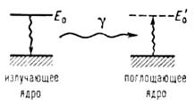 Рис. 2. Схематическое изображение процессов излучения и резонансного поглощения γ-квантов.