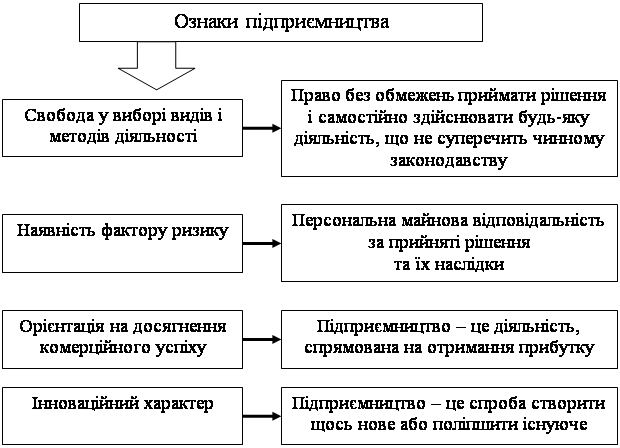 Рис. 1.1. Ознаки підприємницької діяльності.