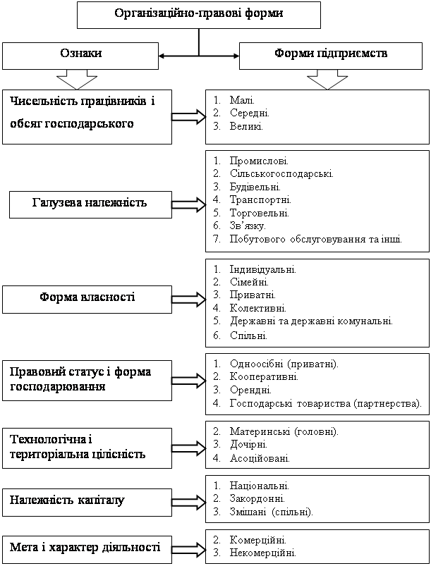 Кожне підприємство відрізняється від інших особливостями продукції, послуг, місцем розташування тощо. Не виключенням є і малі підприємства, які мають свої характерні ознаки. Однак можна виділяти певні основні ознаки, за якими доцільно класифікувати всі організаційно-правові форми підприємств (рис. 1.2).