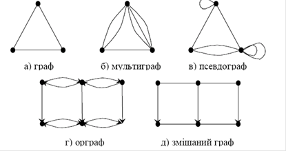 Сполучення цих елементів визначає поняття: неорієнтований граф, орієнтований граф та змішаний граф (6).