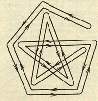 Так, граф на рисунку 2.9. називається «шаблею Магомета», а ойлерів цикл необхідно побудувати за маршрутом, не відриваючи пера ручки від рисунку за одним разом ( тобто розчерком), викреслити фігуру, подану на рис.2.9.