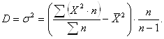 Дисперсия может быть рассчитана по ранее изученной формуле или по упрощенной формуле, наиболее часто применяемой на практике