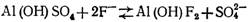 Сорбционная способность активированного оксида алюминия может быть повышена применением для регенерации сорбента вместо раствора едкого натра раствора сульфата алюминия. При этом в процессе удаления фтора из воды активированный оксид алюминия действует как анионит (АН), заряженный при регенерации обменными ионами S042-. Этот процесс описывается следующей реакцией: