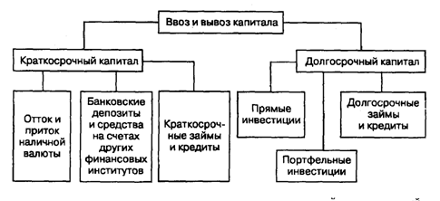 Рис. 1. Деление ввоза и вывоза капитала на краткосрочный и долгосрочный