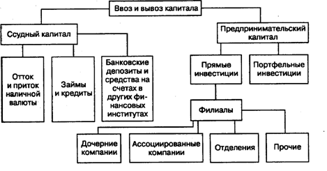 Рис. 2. Деление ввоза и вывоза капитала на ссудный и предпринимательский