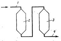 1,4 — подача исходной и отвод умягченной воды; 2 — натрий- катионитовый фильтр; 3 — хлор-аиионитовый или совместный натрий—хлор-ионитовый фильтр