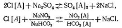 Хлор-ионирование осуществляется после предварительного натрий-катионирования. На натрий-катионитных фильтрах протекают реакции, рассмотренные выше и обрабатываемая вода умягчается, в ней остаются только соли натрия: NaHC03, Na2SО4, NaCl, NaNО3. При пропуске натрий-катионированной воды через сильноосновный анионит в хлор-форме протекают реакции обмена анионов, содержащихся в Na-катионированной воде, на ионы хлора, находящиеся в анионите, а, именно: