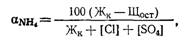 где (Nа) и, Жо — соответственно содержание натрия и общая жесткость исходной воды, мг-экв/л; αNH4 — степень обмена катионов Са (П) и Mg(II) на ион аммония, % (в схемах совместного аммоний—натрий-катионирования) или доля воды, поступающей на аммоний-катионитные фильтры, % (в схемах параллельного аммоний—натрий-катионирования), определяется из уравнения