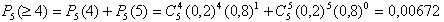 - імовірність того, що відмовлять не менш чотирьох елементів з п'яти (тобто або чотири, або п'ять). в)