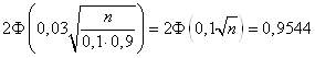 №21. Імовірність того, що деталь не стандартна, p=0,1. Знайти, скільки деталей треба відібрати, щоб з імовірністю, рівної 0,9544, можна було затверджувати, що відносна частота появи нестандартних деталей(серед відібраних) відхилиться від постійної ймовірності p по абсолютній величині не більше ніж на 0,03.