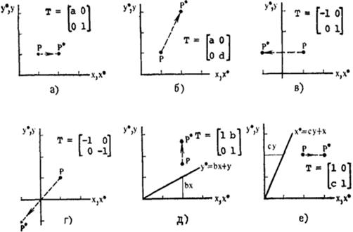 , що визначає точку Р, і матриці перетворення 2х2 загального виду:
