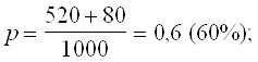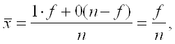 то есть равна относительной частолте (частости) появления данного признака, которую можно обозначить через , тогда ![]()