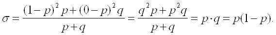 Таким образом, доля единиц, обладающих данным признаком равна ; соответственно доля единиц, не обладающих данным признаком, равна q ; +q =1. Тогда дисперсия альтернативного признака определяется по формуле