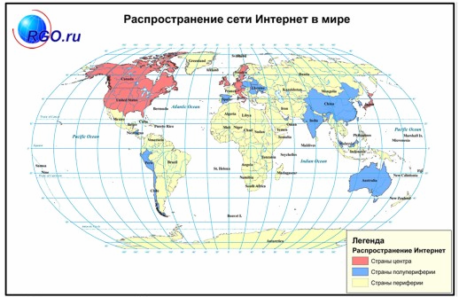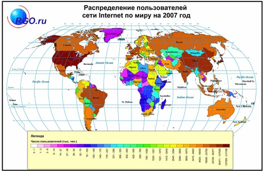 Рис. 2.5 Распространение сети Интернет в мире