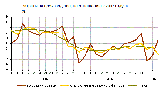 Данные промышленного производства за 2008-2010 года, в %-м отношении к 2007г.