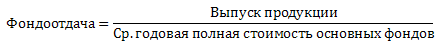 Эффективность использования основных фондов характеризует показатель фондоотдачи, рассчитываемый как отношение объема выпуска продукции за год к среднегодовой полной стоимости основных фондов.