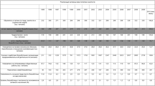 За январь – июнь 2010 года в сельской местности трудоустроено 14,9 тыс. безработных, оказана финансовая поддержка для организации собственного дела 298 безработным, направлено на профессиональное обучение 2,7 тыс. безработных, в оплачиваемых общественных работах приняли участие 25,5 тыс. человек, в том числе 12 тыс. – безработных.