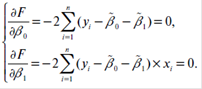 Для того чтобы найти минимум функции двух переменных, нужно вычислить частные производные этой функции по каждой из оцениваемых параметров и приравнять их к нулю. В результате получаем стационарную систему уравнений для функции (2):