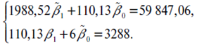 Запишем систему нормальных уравнений исходя из данных таблицы: