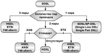 Рис. 2. Классификация симметричных xDSL-технологий по числу пар используемых проводов