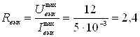 Выходное сопротивление рассчитаем как отношение максимального выходного напряжения к максимальному выходному току: