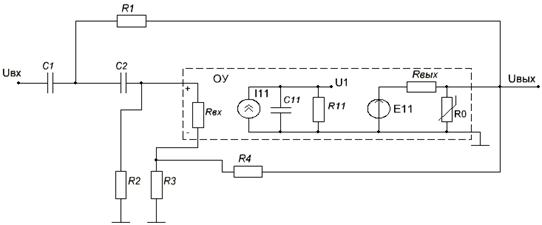 Модели пассивных компонентов остаются без изменений для данного диапазона частот. Модель операционного усилителя выделена пунктиром (рис. 2.1).