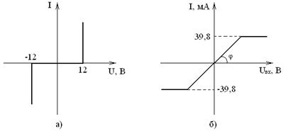 Рисунок 2.2 – Характеристика нелинейного сопротивления R0 (a) и нелинейного источника І11 (б)