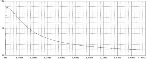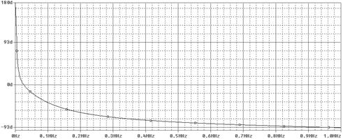 По ФЧХ видим, что при нулевой частоте фазовый сдвиг равен 1800. Это связано с тем, что на нулевой частоте сопротивление ёмкостей велико, а значит, оно будет носить ёмкостной характер. Отсюда и 1800 (по 900 от каждой ёмкости). При росте частоты сопротивление падает, а значит и уменьшается фаза.