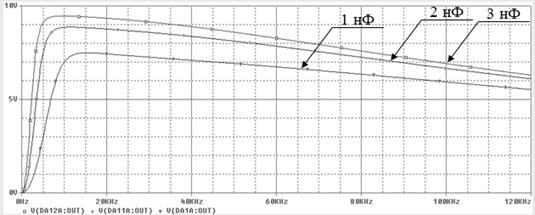 Рисунок 5.1 – Влияние С1 = С2 на АХЧ