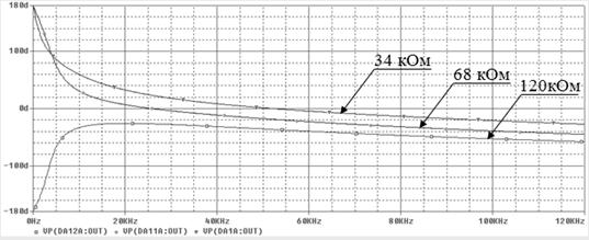 Рисунок 5.4 – Влияние R4 на ФЧХ