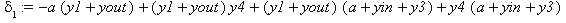 > delta(1):=-a*(y1+yout)+(y1+yout)*y4+(y1+yout)*(a+yin+y3)+ y4*(a+yin+y3);