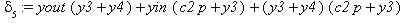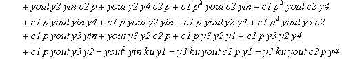 > delta(5):=yout*(y3+y4)+yin*(c2*p+y3)+(y3+y4)*(c2*p+y3);
