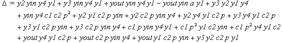 > delta(2):=a*y1*y4+y1*y4*yin+c2*p*y1*y4+yin*c2*p*y1+y4*yin*c2*p;