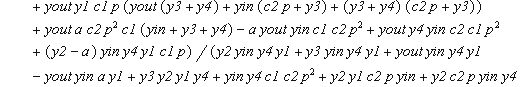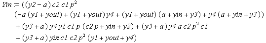 > delta(6):=a*(y1+y4)+(yin+c2*p)*(y1+y4);