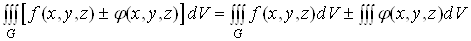 Потрійний інтеграл від суми кількох інтегровних функцій дорівнює сумі потрійних інтегралів від доданків: