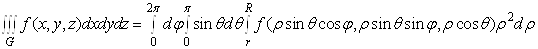 З формули (8) знаходимо потрійний інтеграл у сферичних координатах: