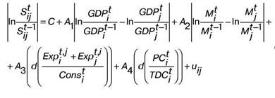 TRADEіj - середнє значення відносини експорту до ВВП для країн i та j;
